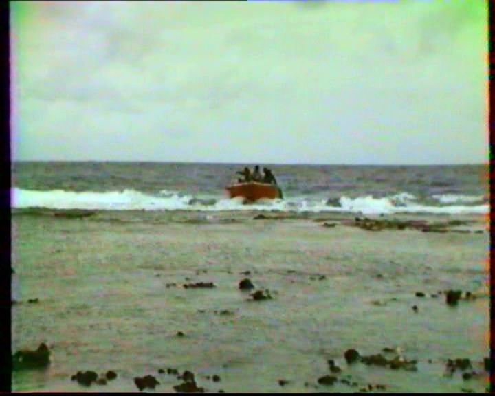 Sur les photos on voit un embarquement difficile de nos bagages embarqués en premier, lors de notre retour de l'atoll. A la suite de cela, le commandant du navire Kikanui refuse devant le danger de nous embarquer, et décide d'attendre le lendemain matin pour le faire, en espérant un temps plus favorable.