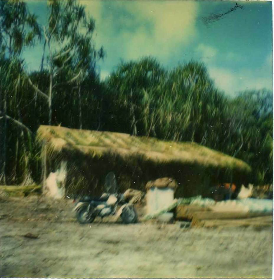 Après le cyclone Orama, j’avais un repère, ma petite moto était ensablée complètement, seul émergeait du sol le carreau du phare avant, après Reva ma moto était entièrement sortie du sol, mon chaland jaune rescapé d’Orama, était échoué au nord de l’atoll, abîmé, plus de z-drive, plus de quille, etc.